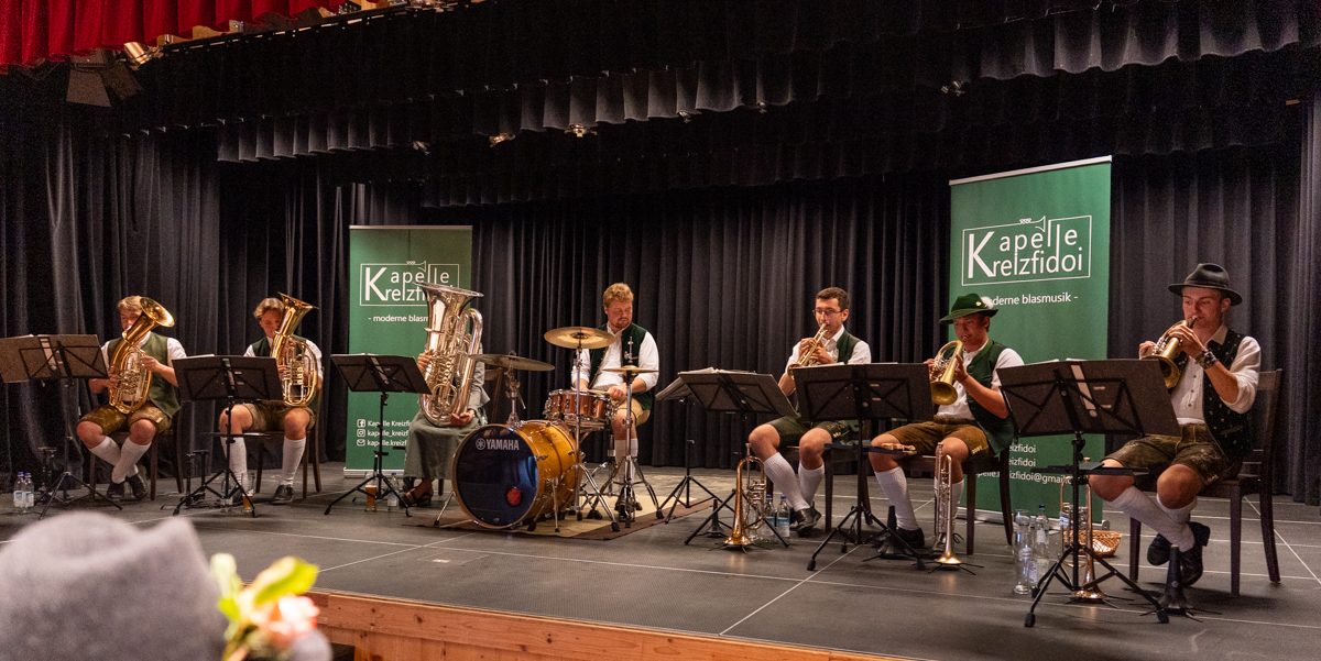 Bei einem geselligen Vormittag unterhielt die Kapelle Kreizfidoi mit zünftiger, moderner Blasmusik. Für das leibliche Wohl sorgte das Café Komod mit frischen Weißwürsten.