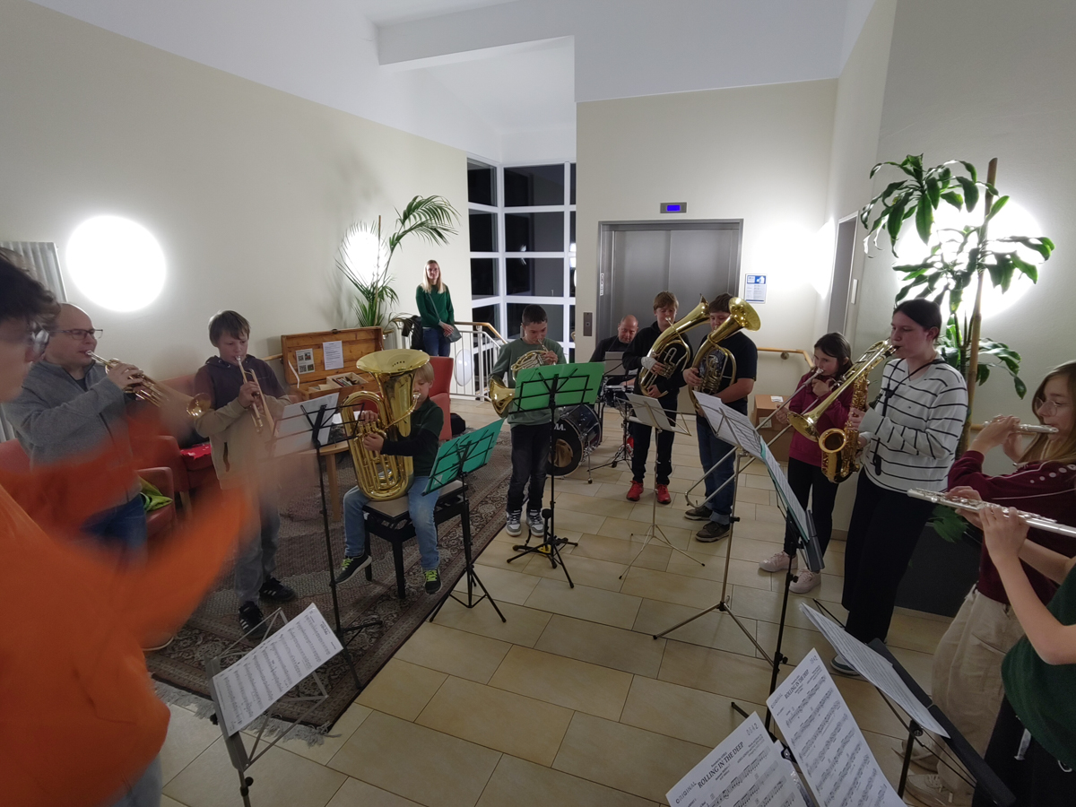 Die Jugendkapelle erfreute die Bewohner des Hospiz Vilsbiburg mit einem kleinen Standerl. Die Vilsbiburger Zeitung berichtete in ihrem Artikel vom 13.12.2025 zur Mitgliederversammlung des Fördervereins folgendermaßen: