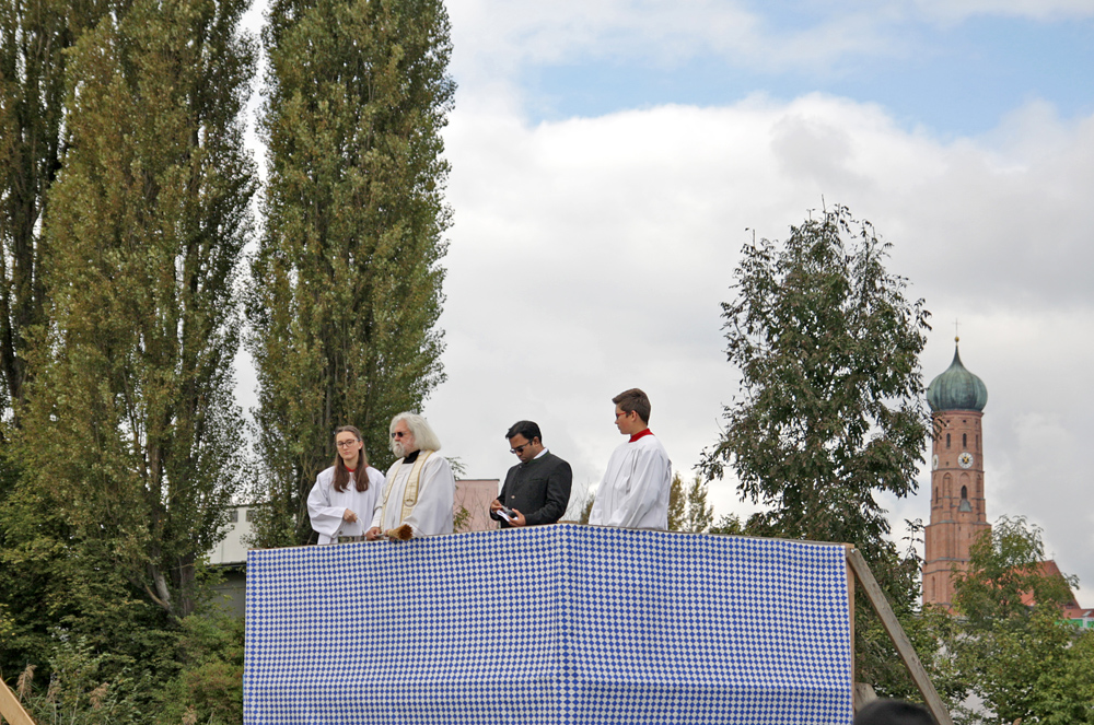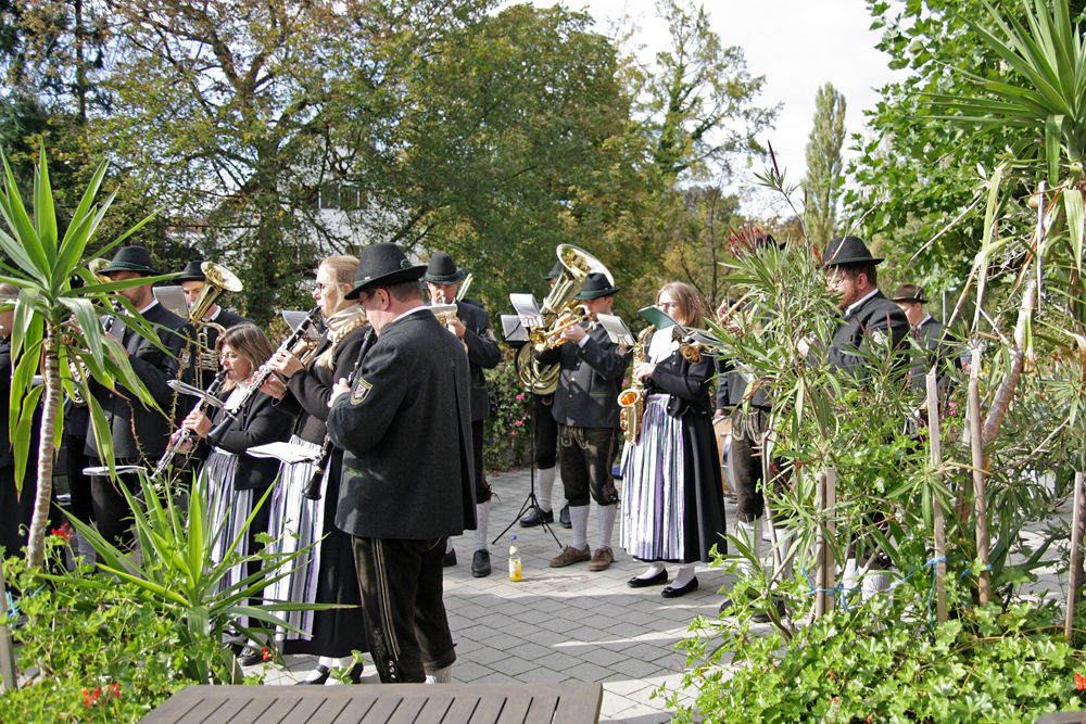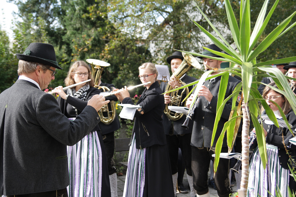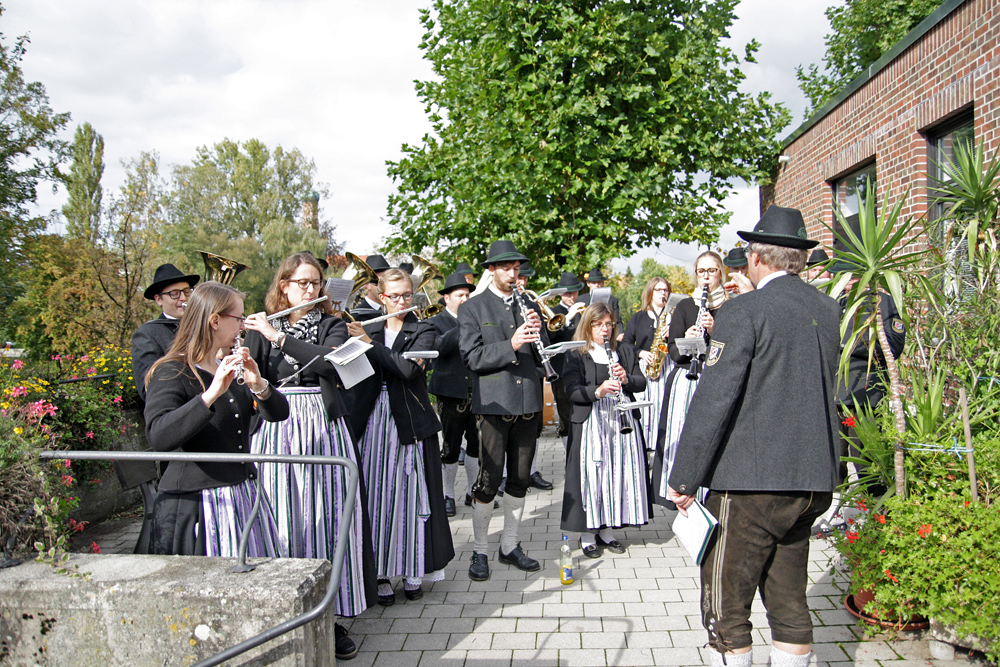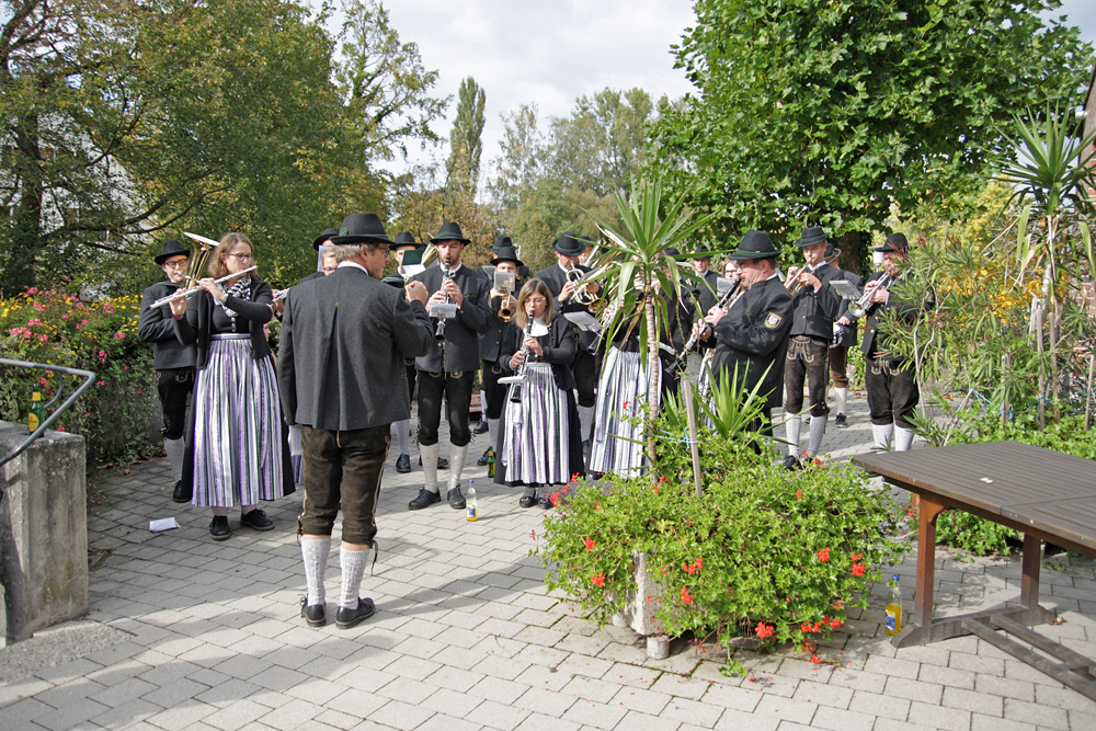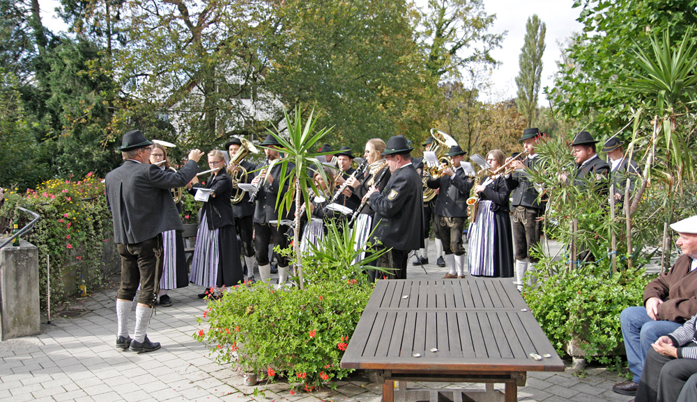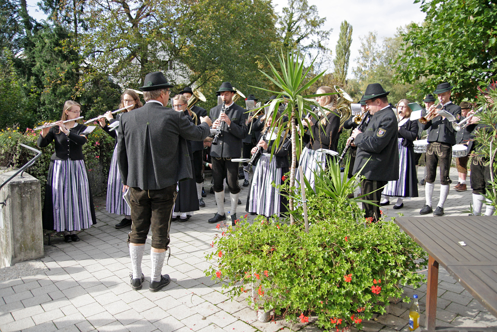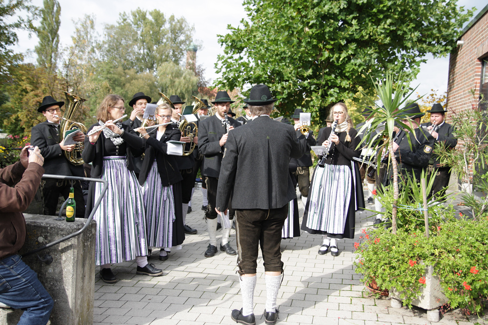 Nach dem Umritt hielt der Verein noch ein Ständchen vor dem Altenheim - solange, bis sich an diesem Tag doch noch die Sonne blicken ließ!