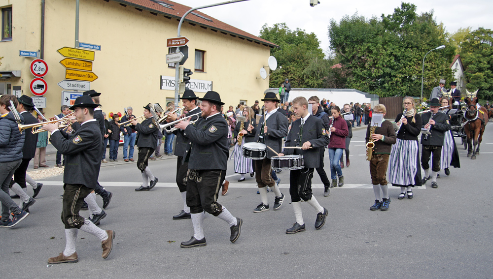 Der Musikverein Vilsbiburg nahm auch dieses Jahr wieder am Pferdeumritt teil. Zum ersten Mal beim Marschieren dabei war auch die Jugendkapelle. Schritt halten, nicht aus der Reihe tanzen und dabei auch noch Musik machen - nicht ganz so leicht am Anfang. Unsere "Jungen" haben Ihren ersten Einsatz im Marschtempo aber mit Bravour absolviert!
