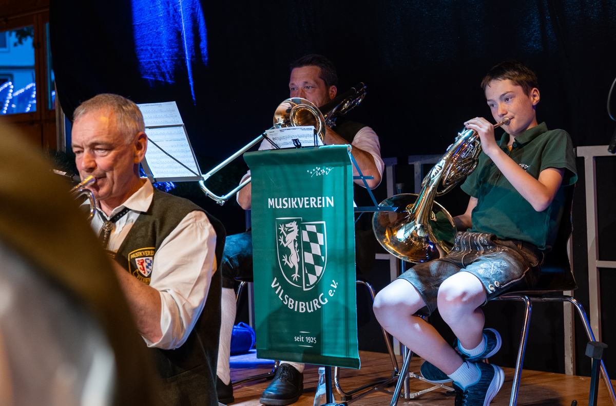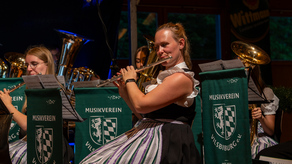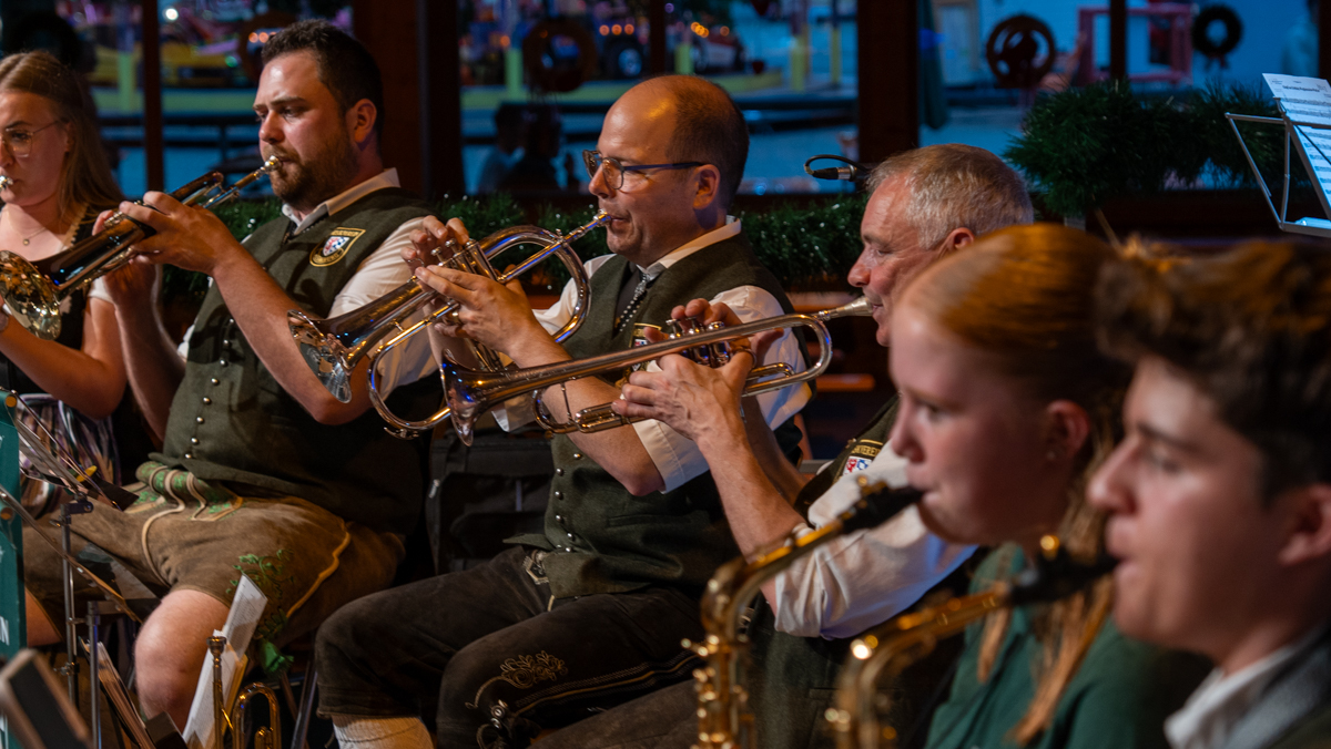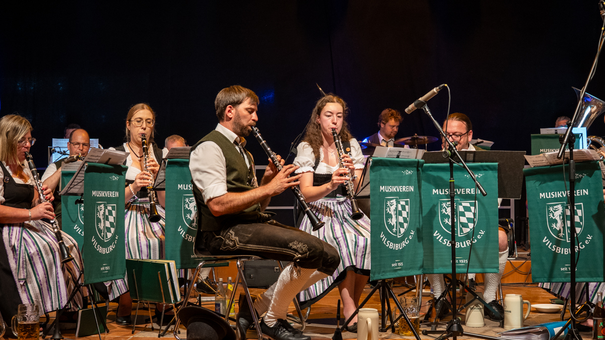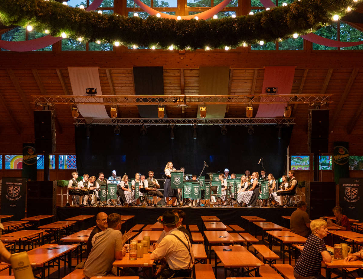 Die Stadt Vilsbiburg hatte sich zu diesem Jubiläum ein besonderes Geschenk für Ihre Bürgerinnen und Bürger einfallen lassen. Das Volksfest startete 2025 schon am Donnerstag, einen Tag vor dem traditionellen Auszug. Der "geschenkte" Tag wurde leider nicht so zahlreich angenommen wie erhofft. Trotzdem war die Spiellaune des Musikvereins Vilsbiburg auf der Bühne bestens und wir feierten eine gelungene Generalprobe zum Start in die Jubiläums-Volksfestwoche.