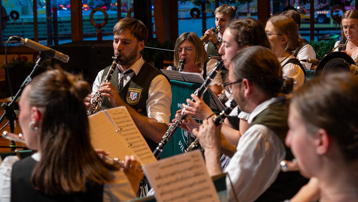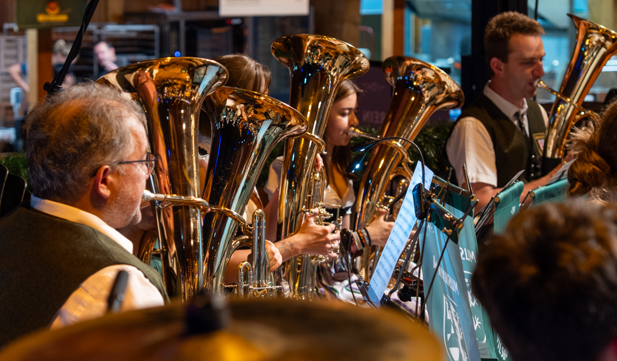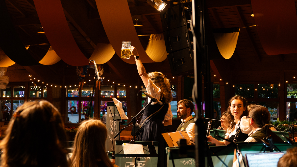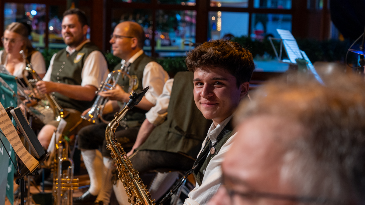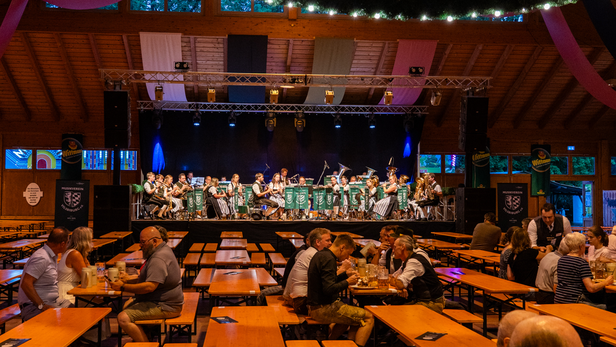 Die Stadt Vilsbiburg hatte sich zu diesem Jubiläum ein besonderes Geschenk für Ihre Bürgerinnen und Bürger einfallen lassen. Das Volksfest startete 2025 schon am Donnerstag, einen Tag vor dem traditionellen Auszug. Der "geschenkte" Tag wurde leider nicht so zahlreich angenommen wie erhofft. Trotzdem war die Spiellaune des Musikvereins Vilsbiburg auf der Bühne bestens und wir feierten eine gelungene Generalprobe zum Start in die Jubiläums-Volksfestwoche.