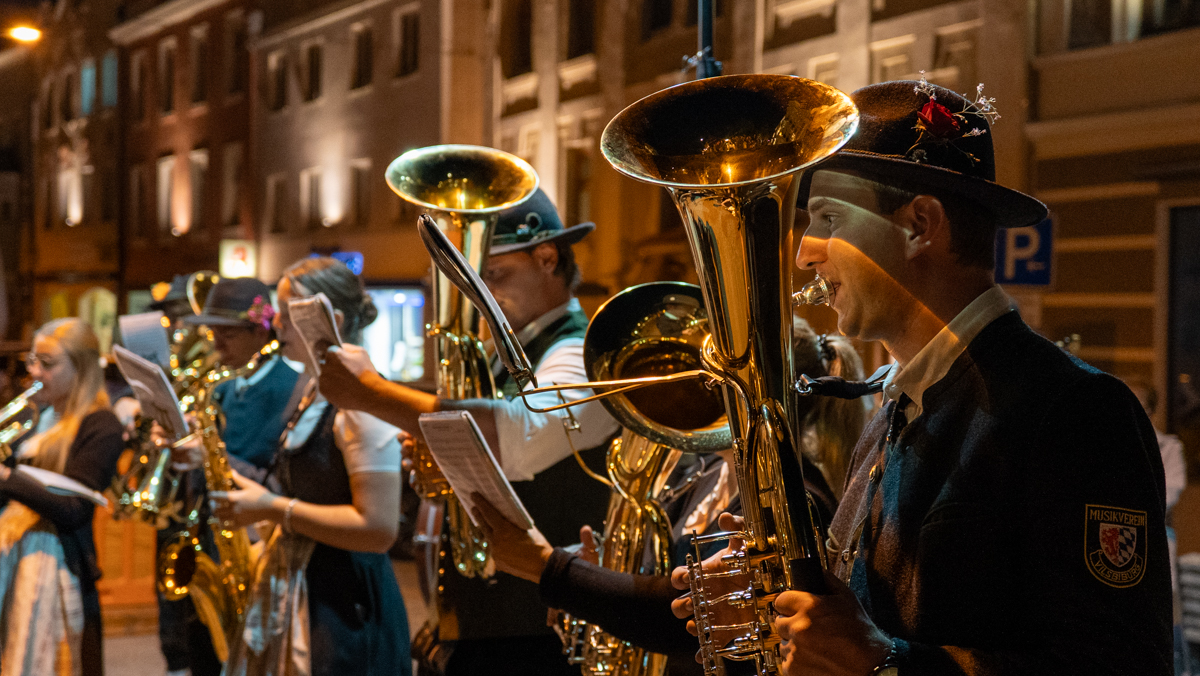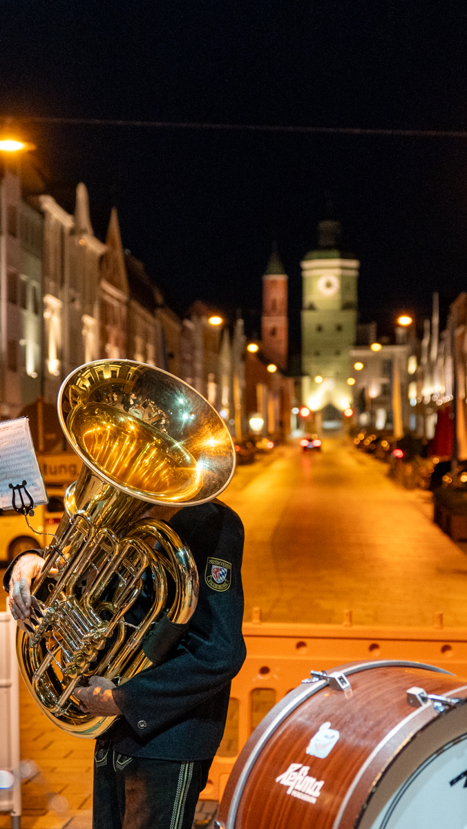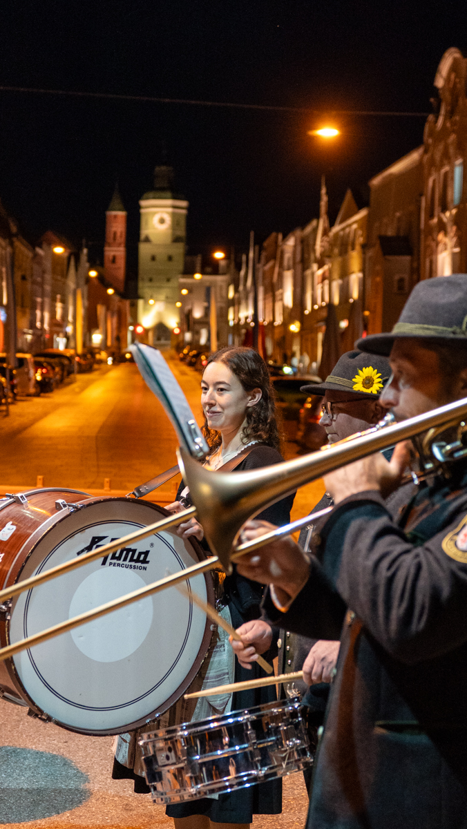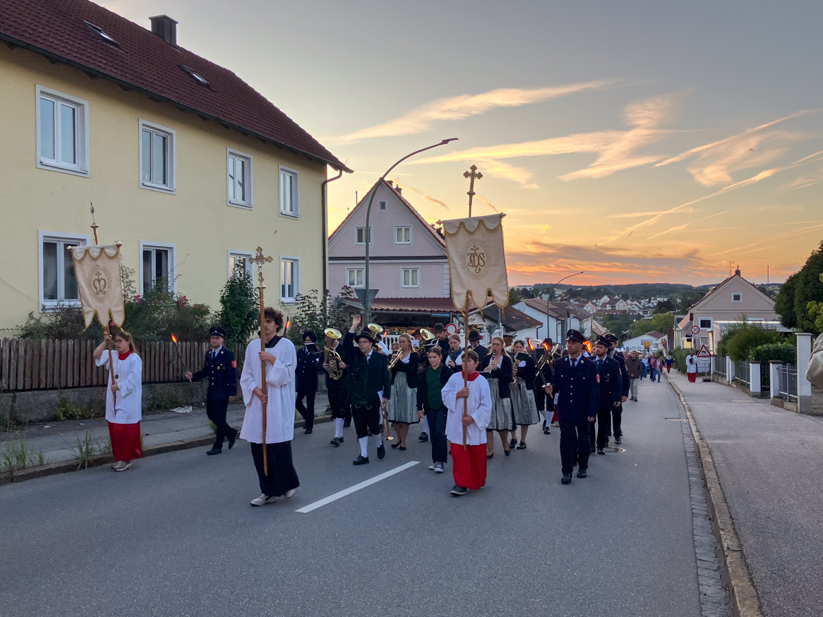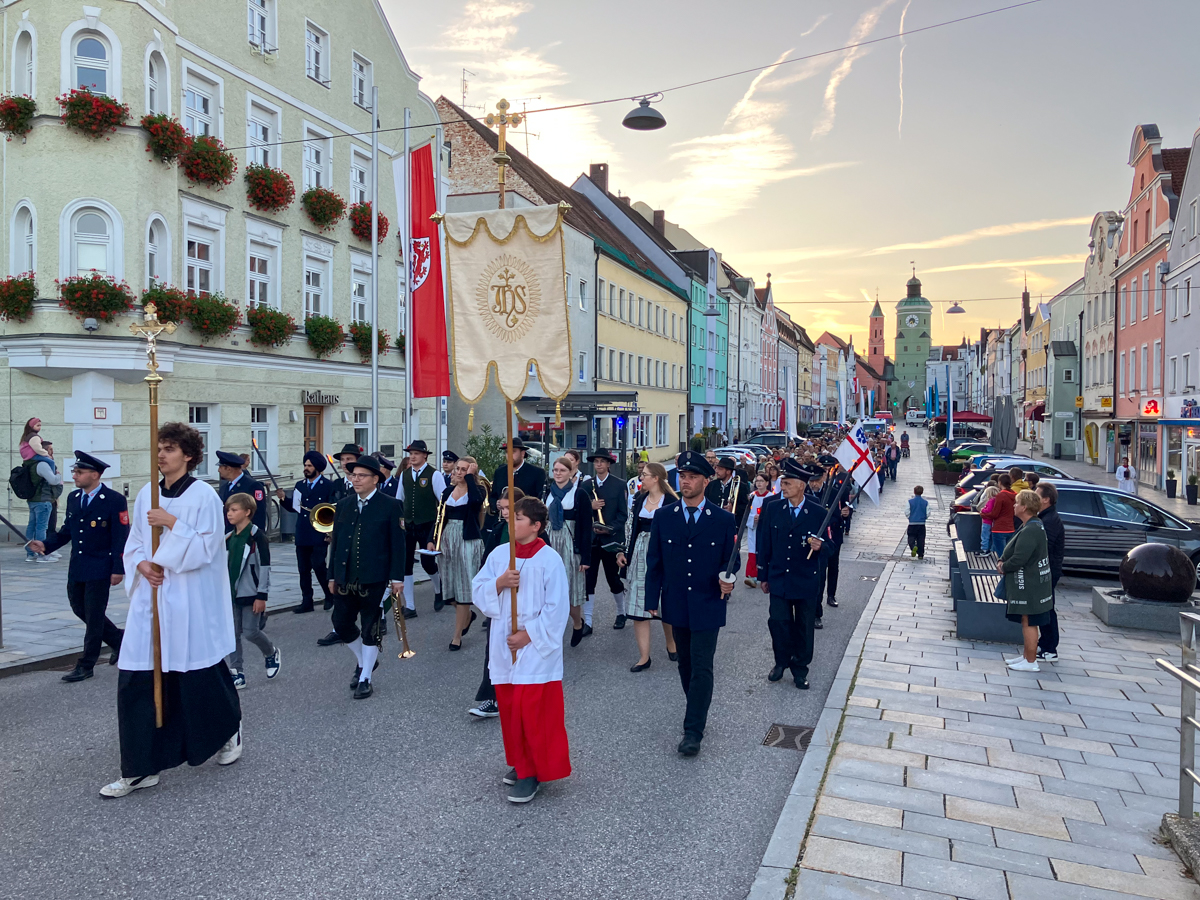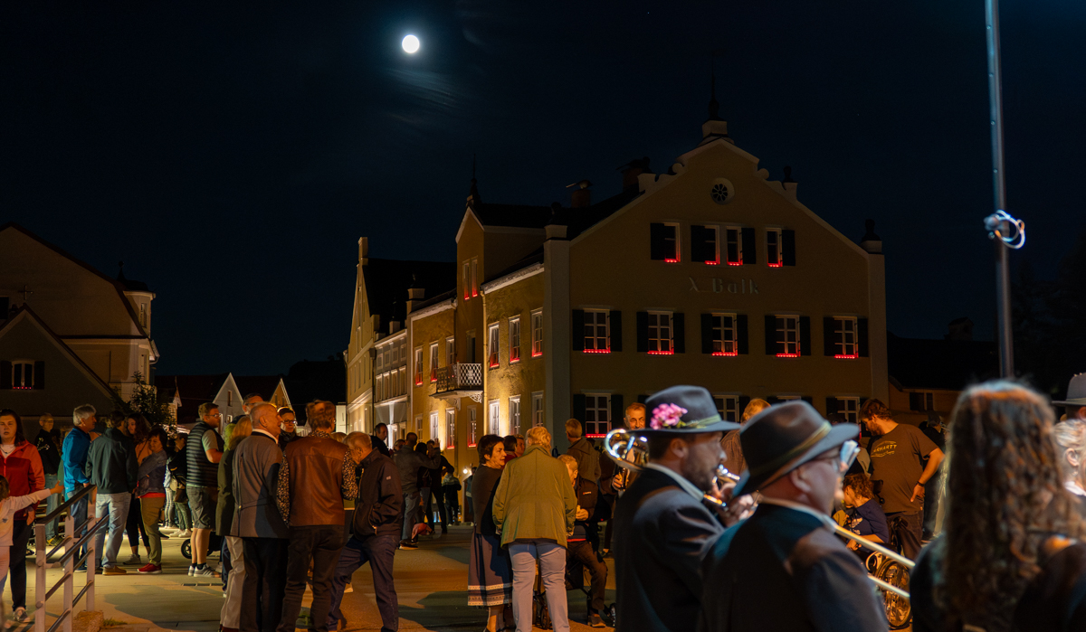 Nach dem Gottesdienst um 18:30 Uhr in der Stadtpfarrkirche begleitete der Musikverein Vilsbiburg die Lichterprozession zur Wallfahrtskirche Maria Hilf. In der Kirche wurde eine Andacht gehalten, die der Musikverein musikalisch umrahmte. Im Anschluss führte der Musikverein die Gemeinde zurück zum Stadtplatz und unterhielt bis zum Beginn des Feuerwerks mit einem Standerl am Rathaus.