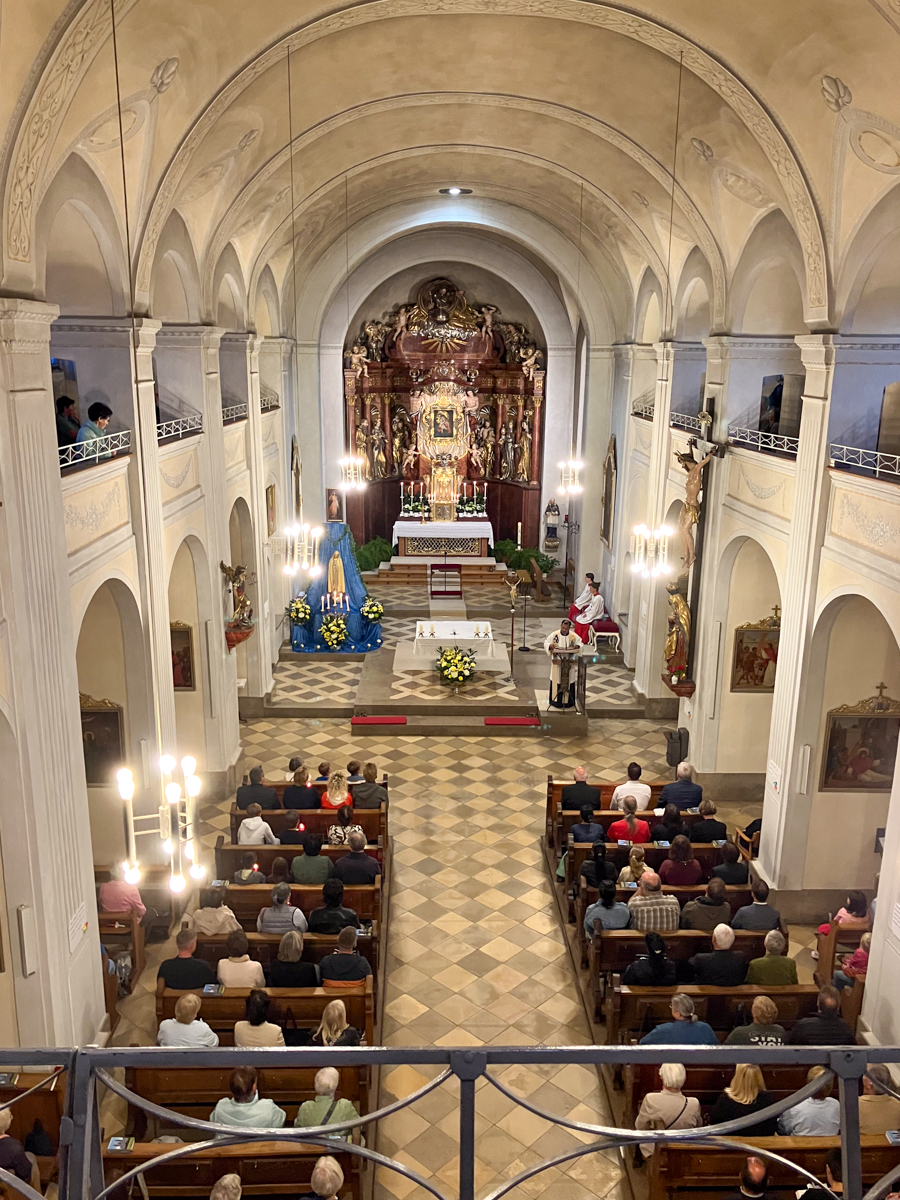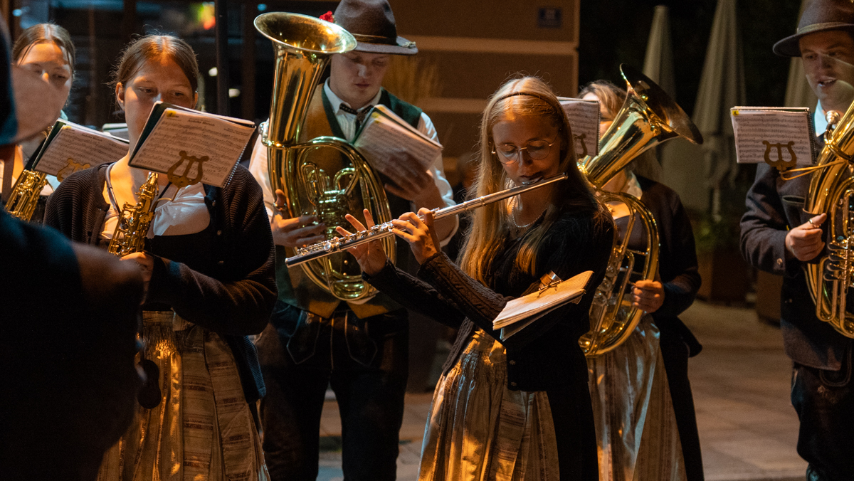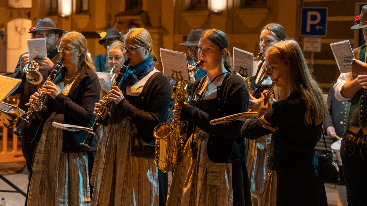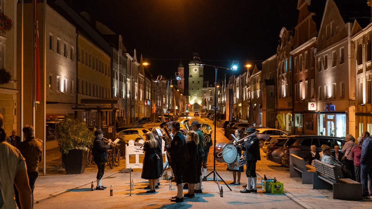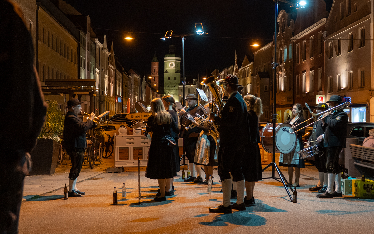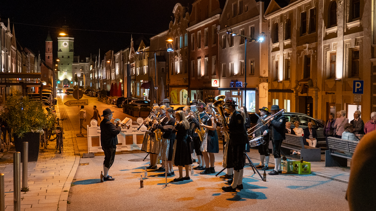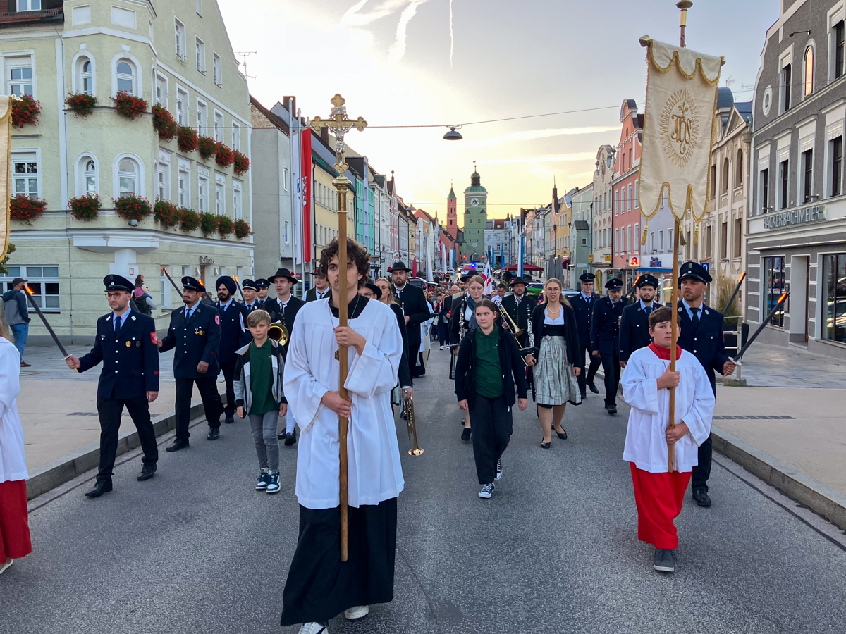 Nach dem Gottesdienst um 18:30 Uhr in der Stadtpfarrkirche begleitete der Musikverein Vilsbiburg die Lichterprozession zur Wallfahrtskirche Maria Hilf. In der Kirche wurde eine Andacht gehalten, die der Musikverein musikalisch umrahmte. Im Anschluss führte der Musikverein die Gemeinde zurück zum Stadtplatz und unterhielt bis zum Beginn des Feuerwerks mit einem Standerl am Rathaus.