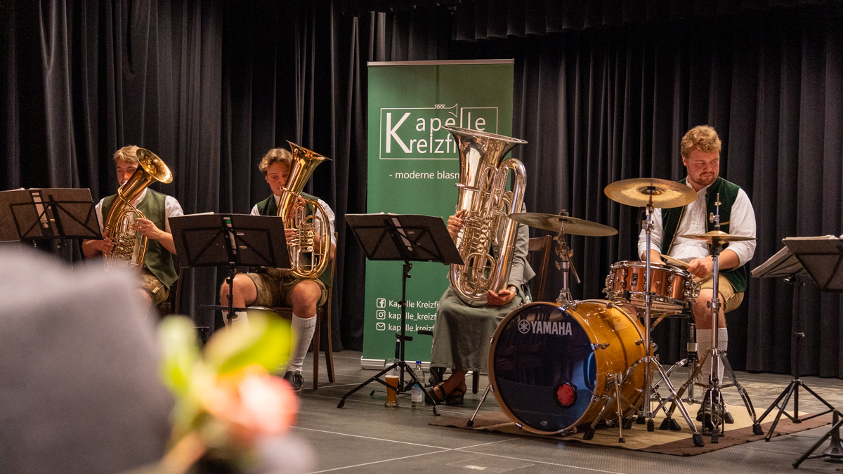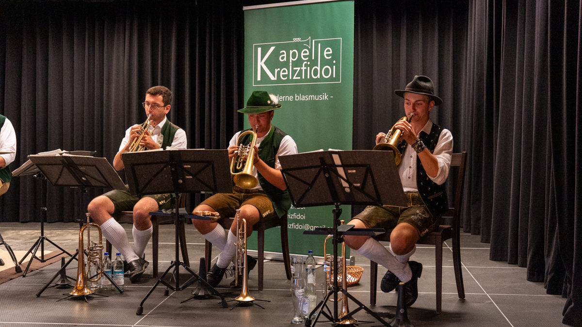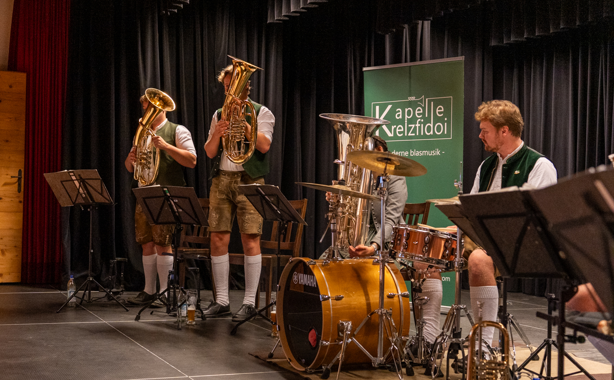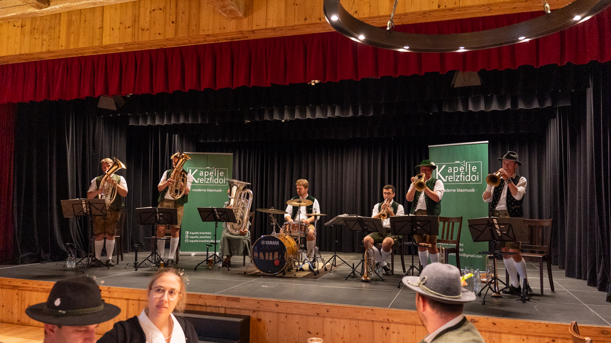 Bei einem geselligen Vormittag unterhielt die Kapelle Kreizfidoi mit zünftiger, moderner Blasmusik. Für das leibliche Wohl sorgte das Café Komod mit frischen Weißwürsten.