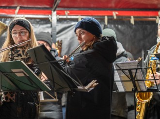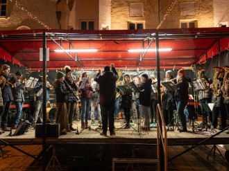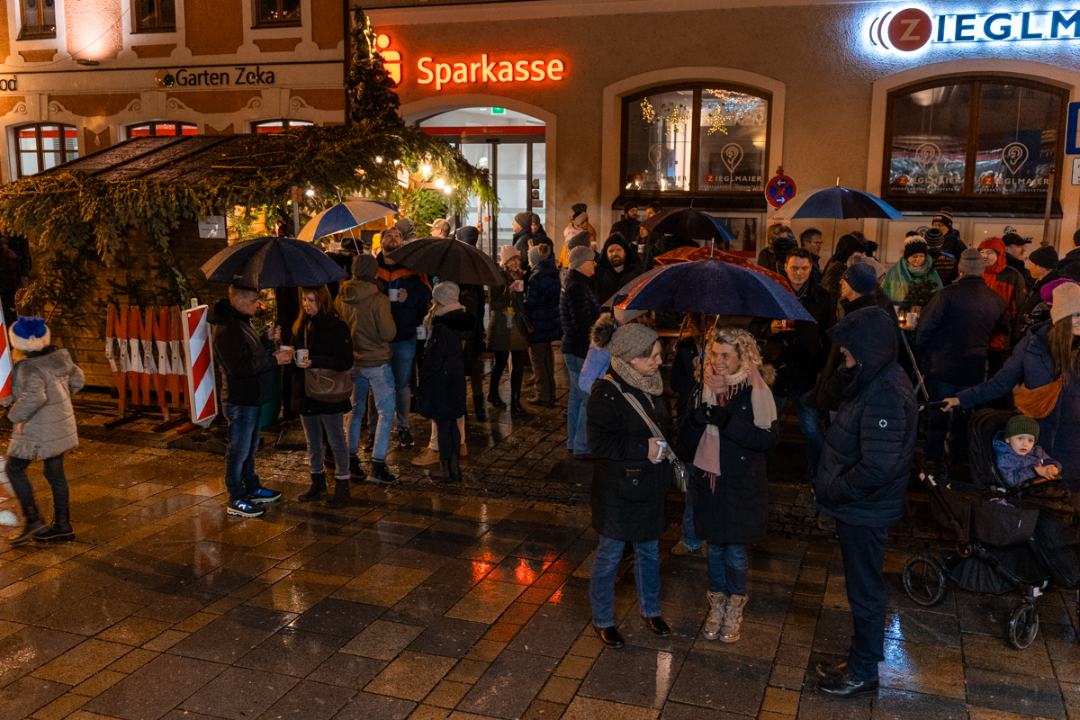 Am Nikolausmarkt in Vilsbiburg unterhielt der Musikverein auf der Bühne gegenüber dem Kolping-Glühweinstand das Publikum von 17 bis 18 Uhr.Bei Weihnachtshits wie "Lustige Schlittenfahrt", "Marys Boy Child" und "Weiße Winterweihnachtszeit" kam trotz anhaltenden Regengetröpfels Stimmung auf. Auch der Publikumsliebling "Feliz Navidad" kam gut an, so dass am Ende noch eine Zugabe gefordert wurde.
